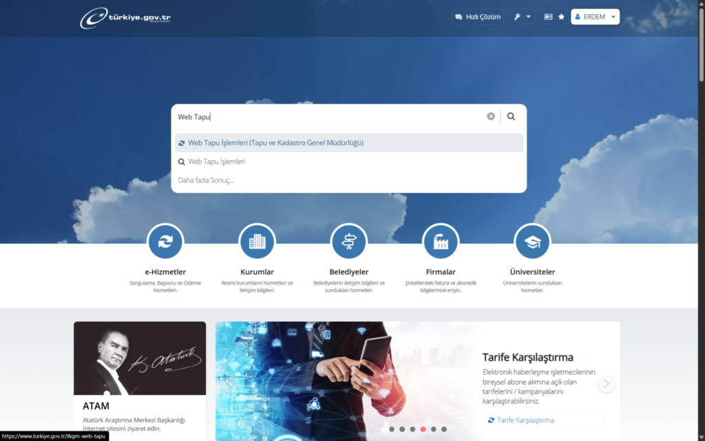 - Arama kutusuna şu ifadeyi yazın: “Web Tapu”